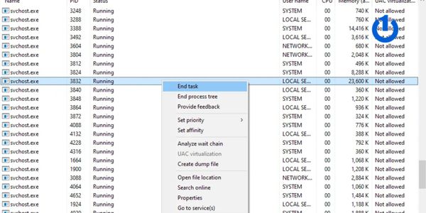 Dừng Svchost.exe bằng Task Manager