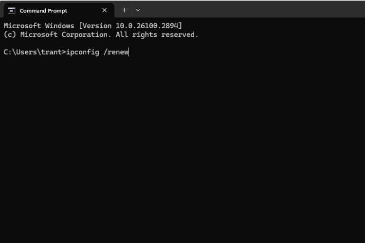 Bước 3: Sau đó, nhập tiếp lệnh ipconfig /renew để yêu cầu một địa chỉ IP mới.
