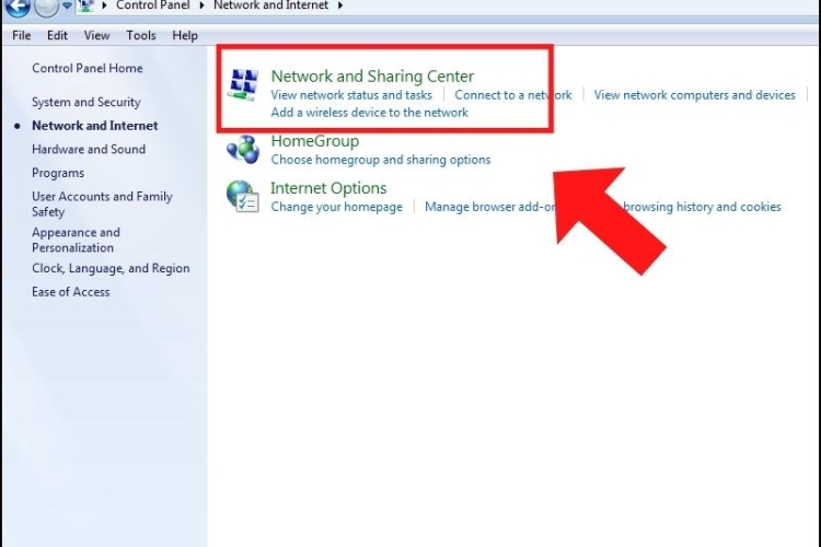 Bước 1: Chọn "Network and Sharing Center" trong phần Control Panel trên máy tính.