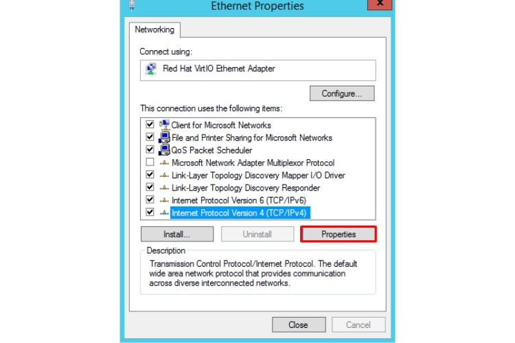 Bước 3: Nhấn vào "Properties" và chọn "Internet Protocol Version 4 (TCP/IPv4)".