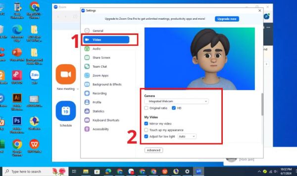 Đôi khi, zoom có thể chọn nhầm thiết bị camera, dẫn đến việc không thể hiển thị hình ảnh. Bạn hãy mở zoom, vào Settings > Video và thay đổi các cài đặt.