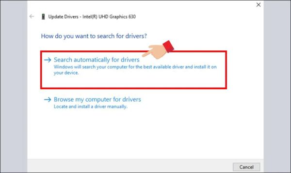 Bước 3: Trong cửa sổ mới xuất hiện, chọn tùy chọn Search automatically for updated driver software.