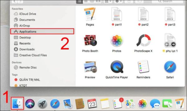 Bước 1: Truy cập vào thư mục Applications trên MacBook bằng cách mở Finder từ thanh công cụ.