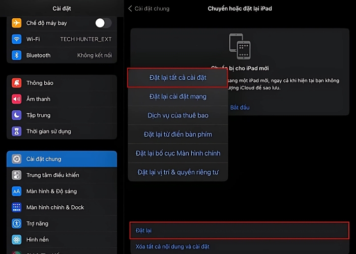 Nhấn chọn “Đặt lại tất cả cài đặt” và “Đặt lại”