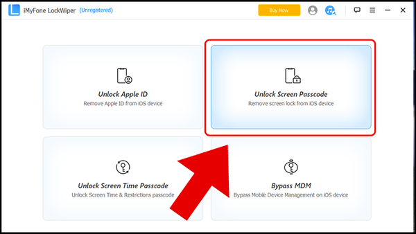 Bước 2: Kết nối iPad với máy tính → Mở iMyFone LockWiper → Tại đây bạn chọn “Unlock Screen Passcode”