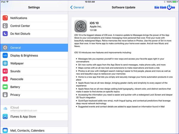 Có thể lỗi đến từ hệ điều hành đã quá cũ hoặc bị lỗi từ Apple. Bạn nên cập nhật phiên bản mới nhất cho máy. Bạn có thể vào phần cài đặt, tùy chọn nút cập nhật phần mềm. Lúc này hệ thống sẽ tự tìm phiên bản tương thích với iPad của bạn. Bạn chỉ cần tải về và cài đặt là hoàn thành việc sửa lỗi.