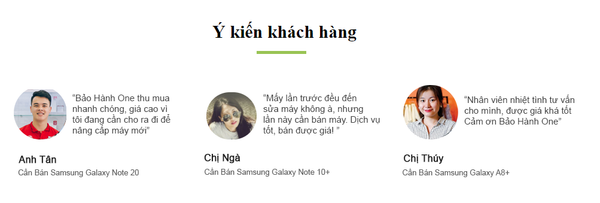 Chúng tôi luôn nhận được nhiều phản hồi đánh giá tích cực từ phía khách hàng, đó là minh chứng cho sự uy tín chất lượng của Bảo Hành One. Hãy tham khảo một số ý kiến khách hàng đã từng sử dụng chương trình thu mua điện thoại Samsung dưới đây