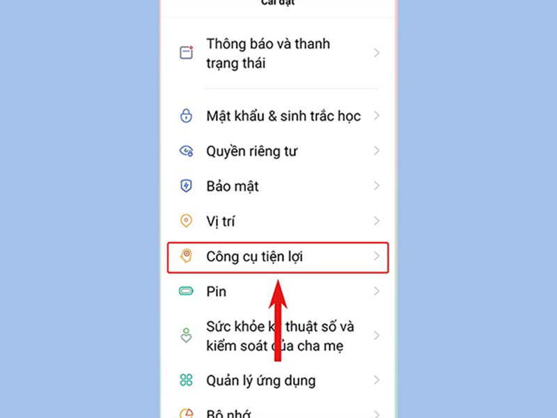 - Bước 1: Bạn vào ứng dụng Cài đặt trên điện thoại và chọn vào mục Công cụ tiện lợi.