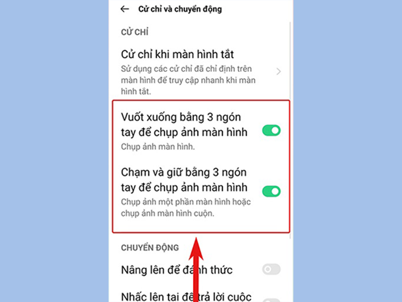- Bước 2: Bạn tiếp tục chọn mục Cử chỉ và chuyển động để thiết lập các hành động thông minh.
