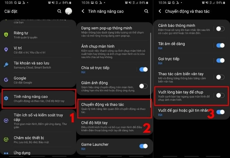 - Truy cập cài đặt: Bạn vào ứng dụng Cài đặt, chọn mục Tính năng nâng cao. Sau đó nhấn vào dòng Chuyển động và thao tác trên chiếc điện thoại của mình.