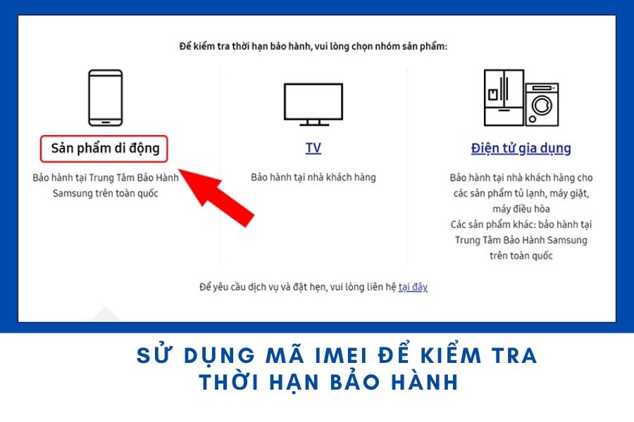 Bước 2: Trong mục kiểm tra thời gian bảo hành, nhấn chọn Sản phẩm di động.