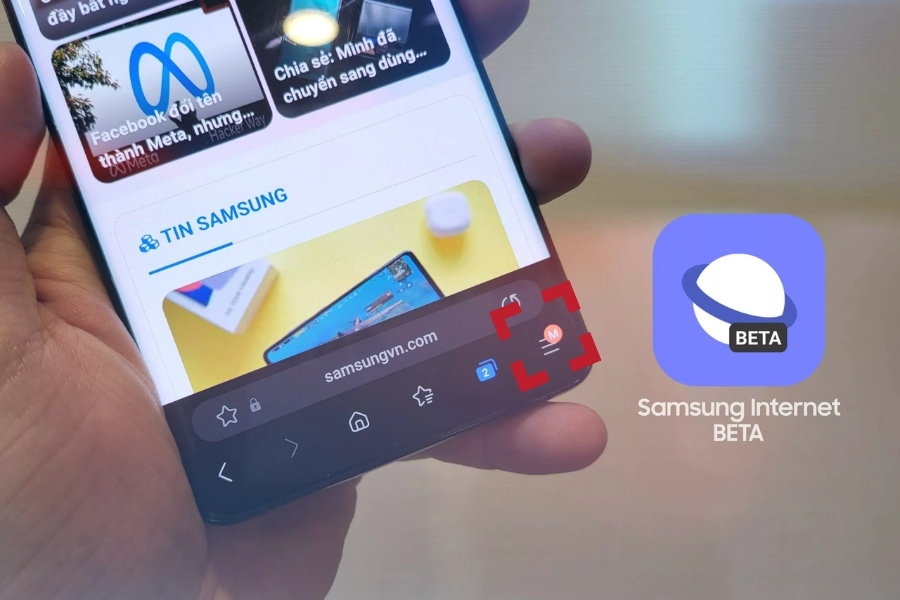 Truy cập Samsung Internet và chọn biểu tượng ba dấu gạch ngang