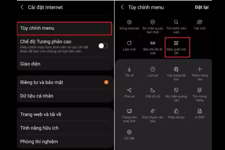 Thêm ứng dụng Máy quét mã QR vào Samsung Internet