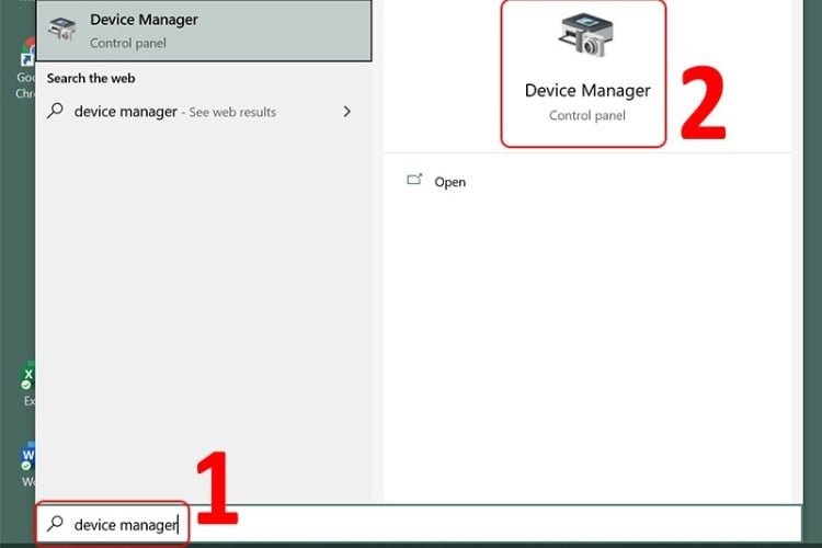 Bước 1: Mở thanh tìm kiếm gõ “Device Manager” sau đó chọn vào mục này khi nó xuất hiện.