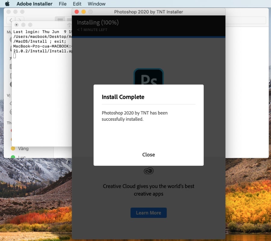 • Bước 8: Khi đã thực hiện cài đặt thành công, bạn cần phải crack ứng dụng để có thể chạy. Đến đây chính là bước cuối cùng trong hướng dẫn cách tải photoshop cho MacBook.