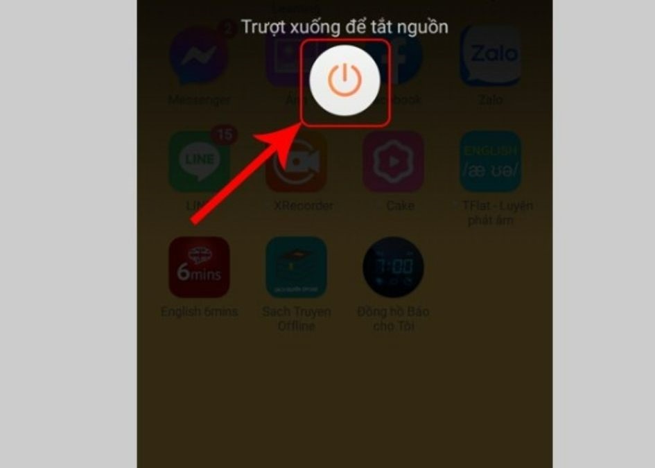 - Bước 3: Chạm nhẹ vào vòng tròn đó và vuốt nhẹ xuống phía dưới theo hướng chữ “Tắt nguồn” màu đỏ.