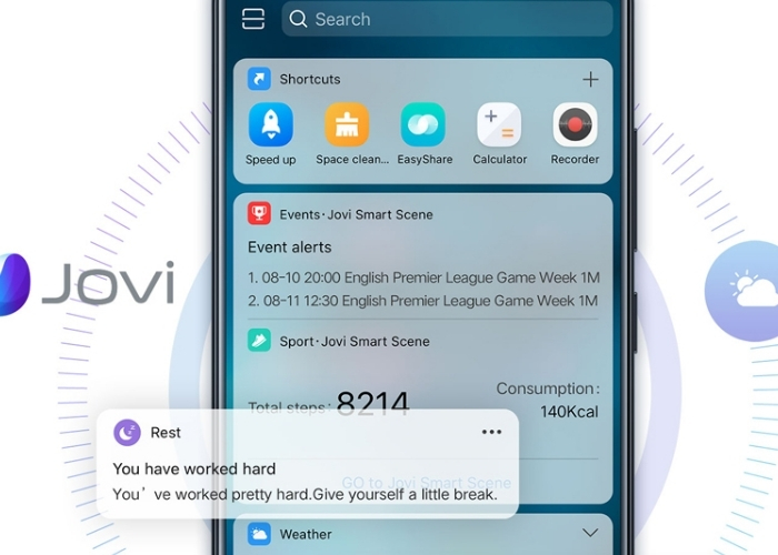 Nếu bạn sử dụng Vivo V21 và đã cài đặt trợ lý ảo Jovi, bạn có thể dễ dàng tắt nguồn bằng giọng nói. Để thực hiện, bạn vuốt từ dưới lên để mở thanh điều hướng và nhấn vào biểu tượng Jovi Assistant.