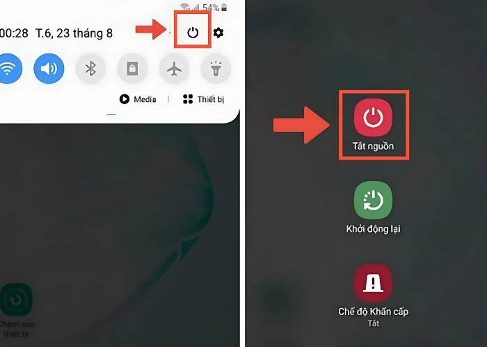 Nhấn giữ nút nguồn và chọn "Tắt nguồn"
