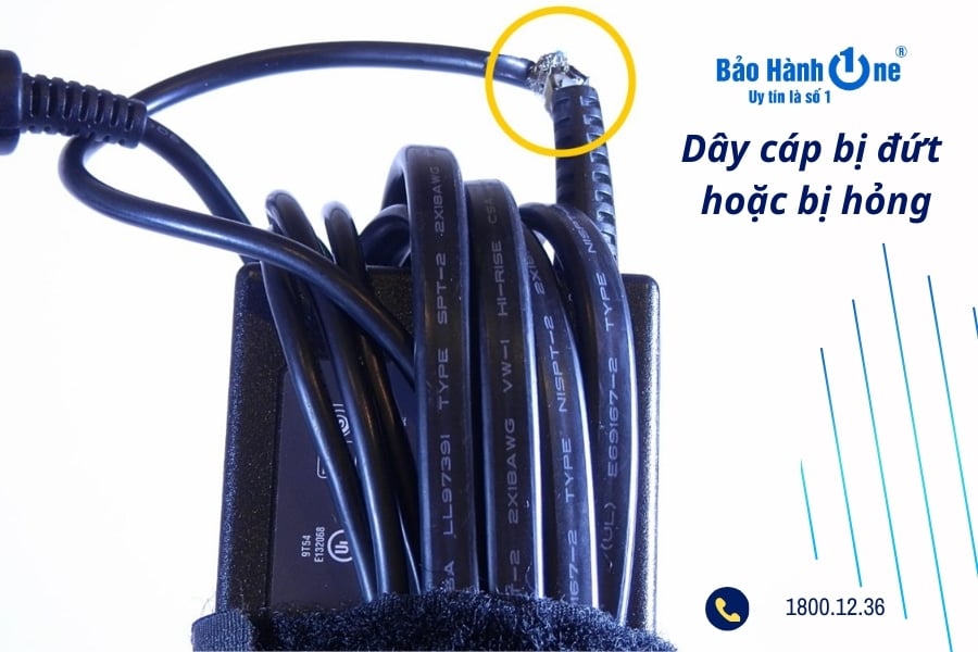 Nếu dây cáp bên trong adaptor bị đứt hoặc bị hỏng, thì nó cũng là nguyên nhân khiến cho đèn bị tắt khi mà cắm sạc vào laptop. Bởi vì dây cáp bị đứt nên không thể truyền tải điện năng đến laptop và không có điện năng nên đèn adaptor trên laptop bị tắt khi đang cắm sạc.