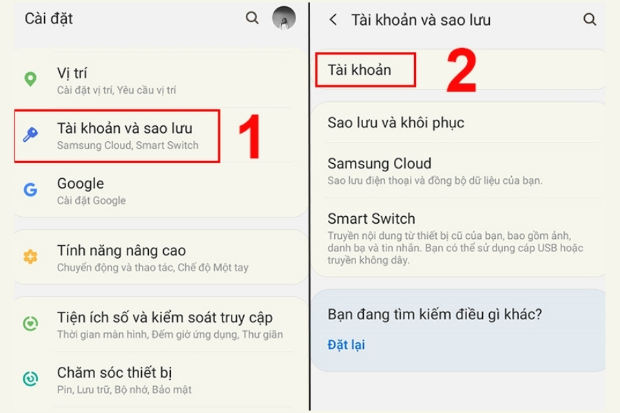 Vào Tài khoản và sao lưu trong mục Cài đặt Samsung