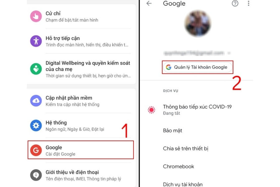 Vào Quản lý Tài khoản Google trong Cài đặt