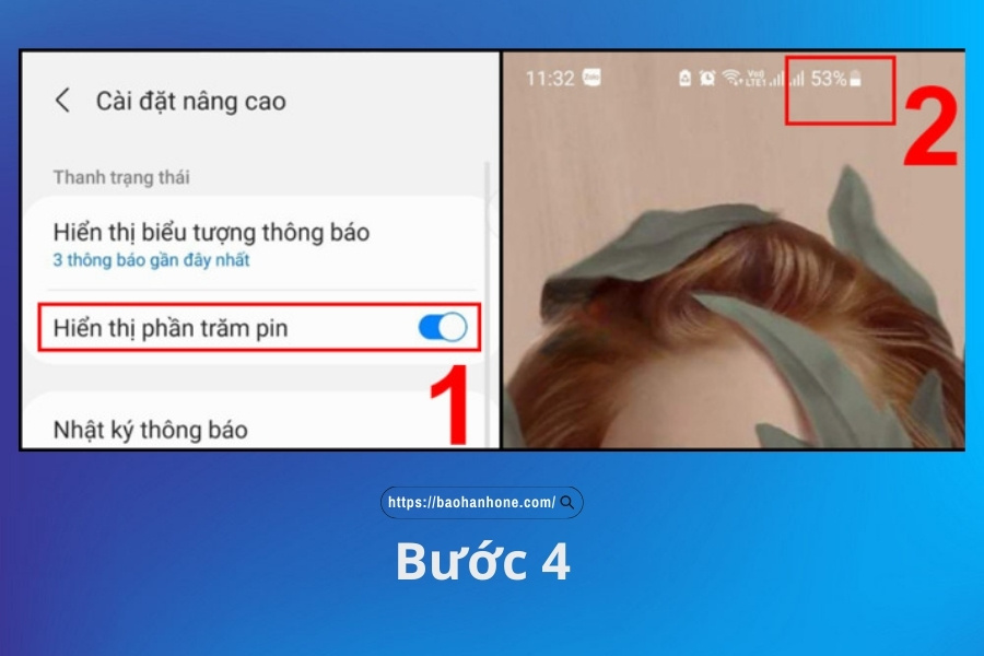 Hướng dẫn thao tác hiển thị phần trăm pin trên Samsung