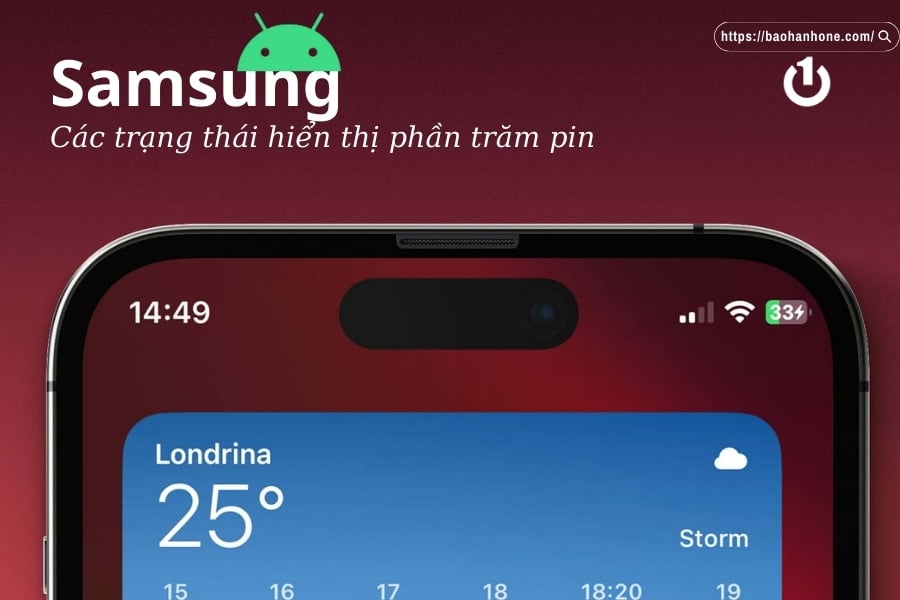 Các trạng thái hiển thị phần trăm pin của Samsung