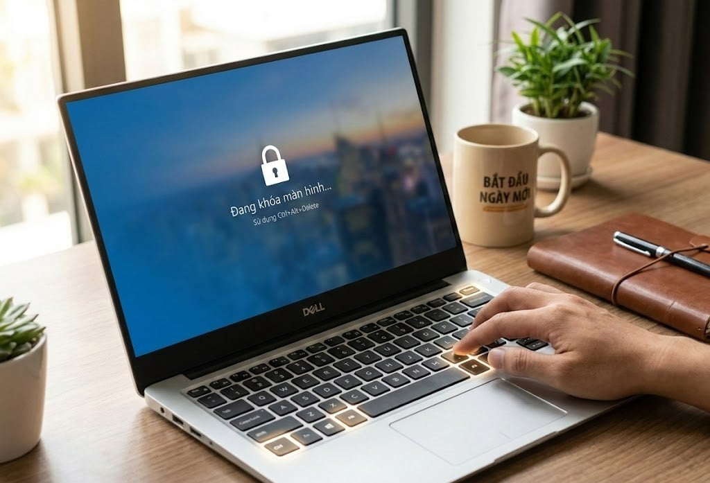 Đây là phương pháp nhanh nhất và phổ biến nhất, giúp bạn khóa máy ngay lập tức trước khi rời khỏi vị trí làm việc.