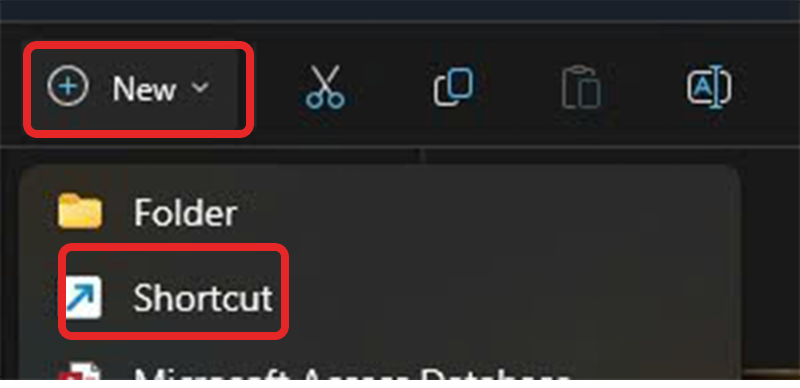 - Bước 1: Click chuột phải vào vùng trống bất kỳ trên màn hình Desktop, chọn New => Shortcut.