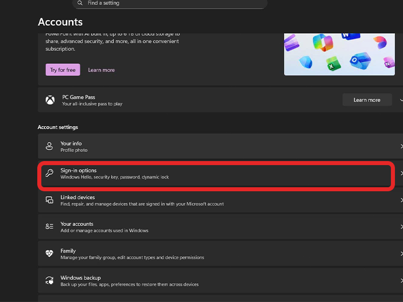 - Bước 2: Truy cập vào Settings => Accounts => Sign-in options trên máy tính Windows.