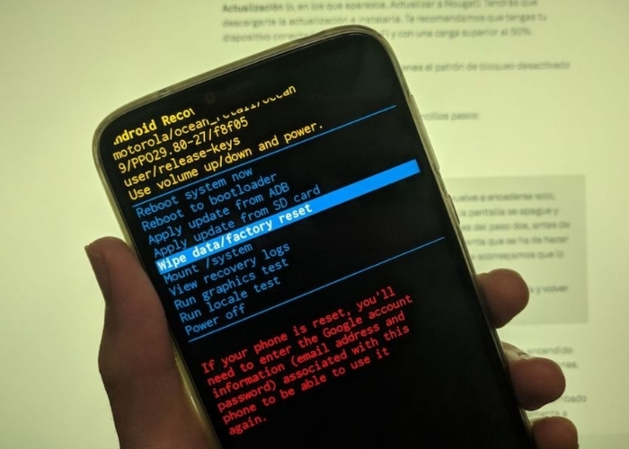 Chọn “Wipe data/factory reset” để xóa toàn bộ dữ liệu