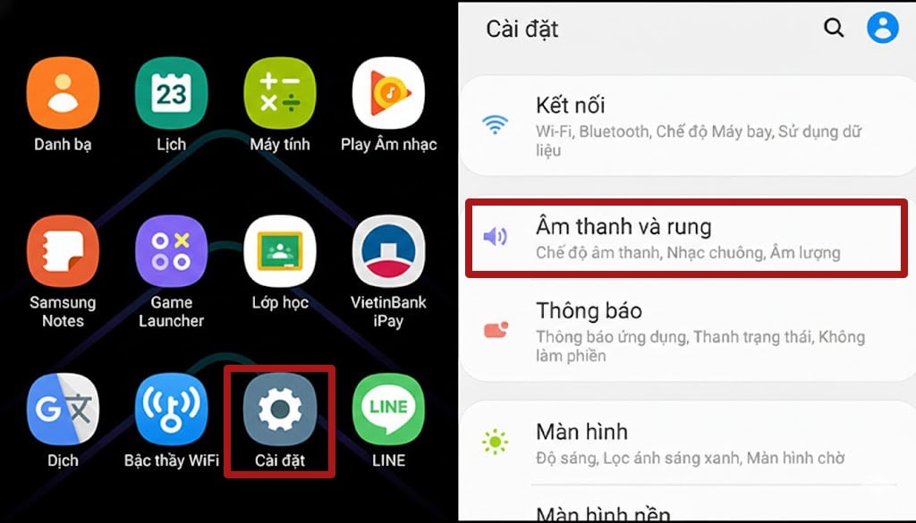 - Chọn Âm thanh và hiệu ứng: Nơi tập trung các tùy chỉnh về âm và rung.
