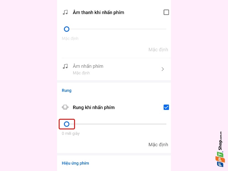 - Kéo thanh Rung khi nhấn phím về mức thấp nhất: Bạn có thể bỏ tick chọn hoặc kéo thanh trượt xuống 0 mili giây để hoàn tất.