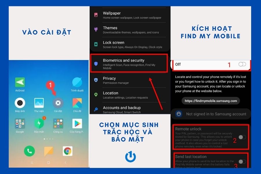Các bước kích hoạt điều khiển từ xa trên Find My Mobile