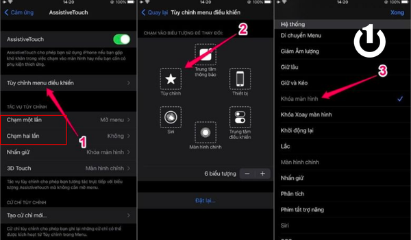 Vào Cài đặt → Cài đặt chung → Assistive Touch → Tùy chỉnh menu điều khiển → Tùy chỉnh → Khóa màn hình.