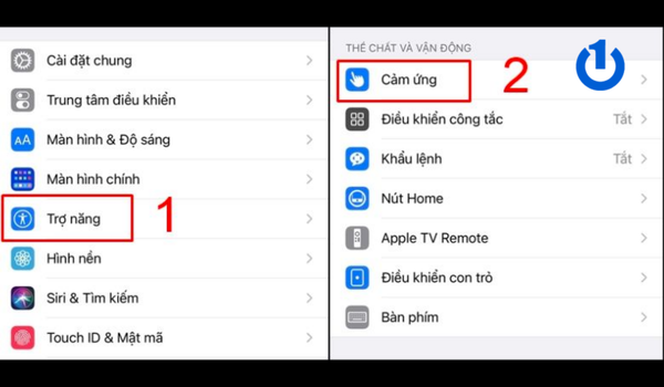 Bước 2: Chọn tiếp vào phần Trợ năng → Tiếp tục chọn mục Cảm ứng.