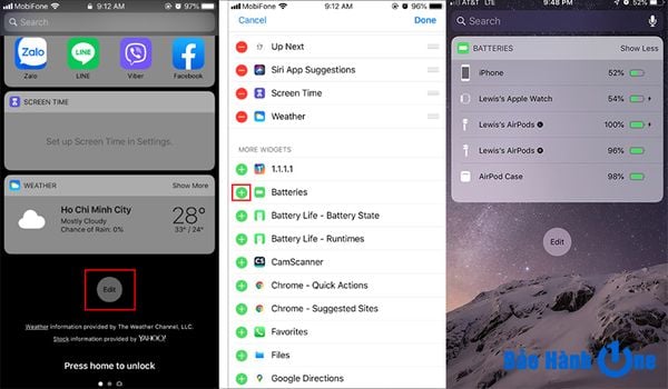 Xem trực tiếp từ Widget Batteries trên iPhone