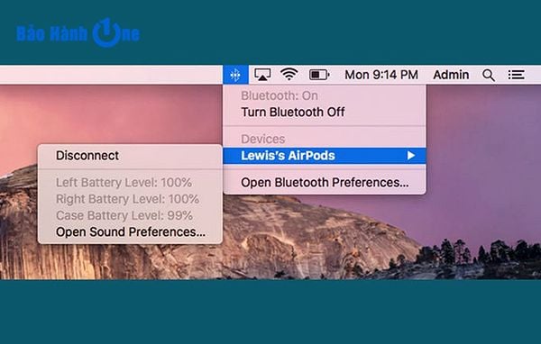 - Bước 2: Nhấn vào biểu tượng Bluetooth của máy Mac (ở trên cùng bên phải màn hình thanh menu) để kết nối máy Mac với AirPods