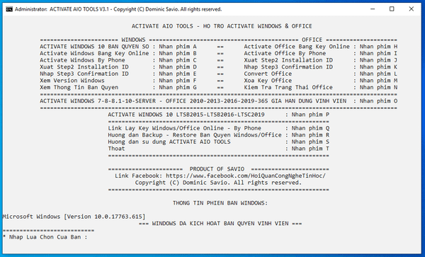 - Bước 3: Trong giao diện của công cụ AIO, nhấn phím "L" trên bàn phím để chọn phương pháp kích hoạt.