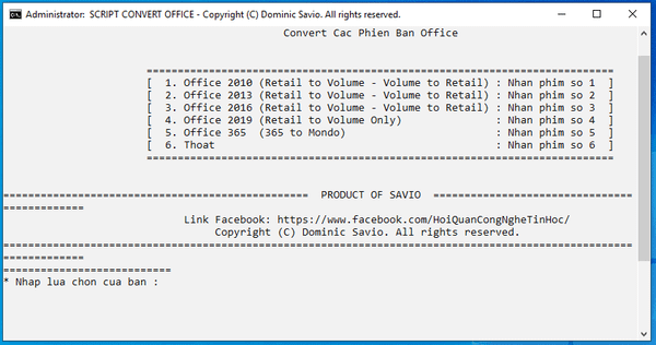- Bước 4: Nhấn phím số 5 để chọn tùy chọn kích hoạt Office 365.
