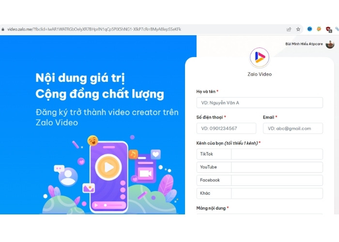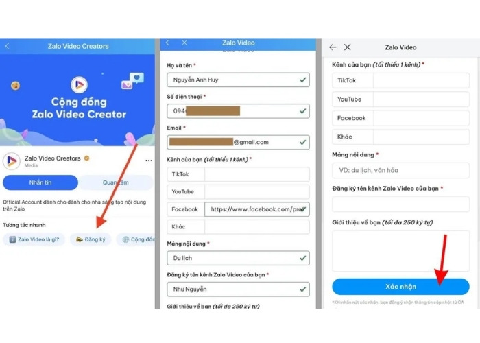 Các bước đăng ký Zalo Video Creator trên điện thoại