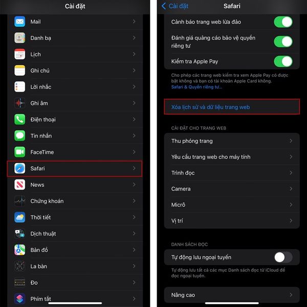 Bước 2: “Xóa lịch sử và dữ liệu trang web”.