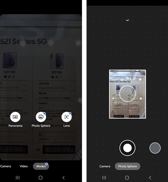 Bước 4. Các tính năng chụp Panorama, Photo Sphere, Lens,... được bổ sung thêm nhiều tính năng mới.