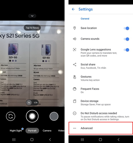 Bước 5. Các tính năng chụp Chân dung Portrait, Night Sight đang chờ bạn khám phá. Phần Cài đặt giúp tùy chỉnh lại các thông số nếu muốn.