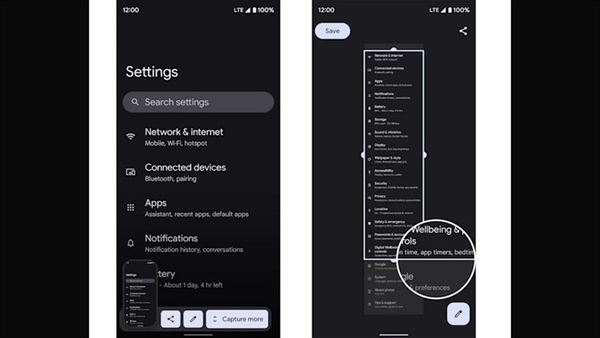 Android 12 beta3 được bổ sung tính năng ảnh chụp cuộn màn hình.