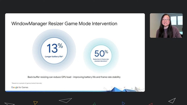Cuối cùng, Google cũng thông tin chi tiết về bảng điều khiển trò chơi mới của Android 12 và chế độ chơi game API. Bảng điều khiển trò chơi của Android 12 cung cấp quyền truy cập vào các công cụ hữu ích như trình ghi màn hình, phím tắt chụp màn hình, màn hình FPS và nút chuyển đổi không làm phiền. Các công cụ này cũng có thể được truy cập thông qua một nút nổi trên màn hình (trên thanh công cụ chơi game hiển thị ở gần cuối khi người dùng thoát khỏi chế độ toàn màn hình bằng cách vuốt để hiển thị trạng thái hoặc thanh điều hướng).