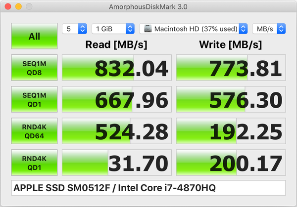 Một trong các chỉ số quan trọng là tốc độ đọc, ghi vô cùng nhanh chóng và chính xác của ổ cứng SSD, tốc độ này sẽ được kiểm tra nhanh chóng qua phần mềm CrystalDiskMark, giúp đánh giá chính xác sức khỏe của ổ cứng.