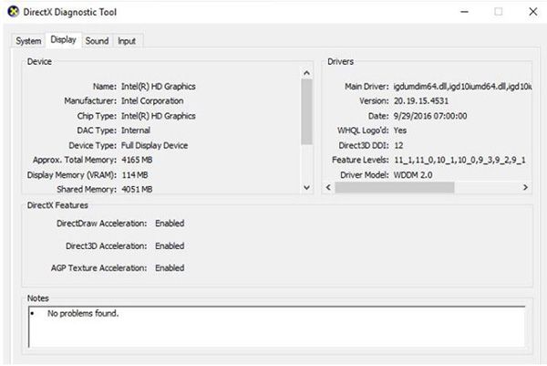 Kiểm tra laptop có card màn hình rời qua Dxdiag