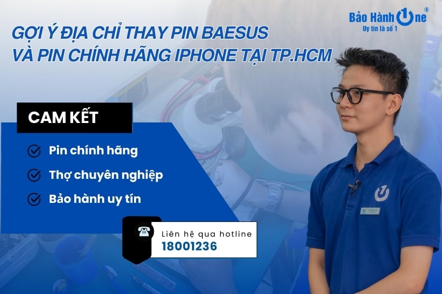 Với hơn 10 năm kinh nghiệm trong lĩnh vực sửa chữa điện thoại, Bảo Hành One là đơn vị được người dân Sài Gòn tin tưởng lựa chọn, với dịch vụ thay pin chuyên nghiệp, nhanh chóng và minh bạch. Tại đây, bạn sẽ được trải nghiệm dịch vụ thay pin Baseus và pin chính hãng iPhone: