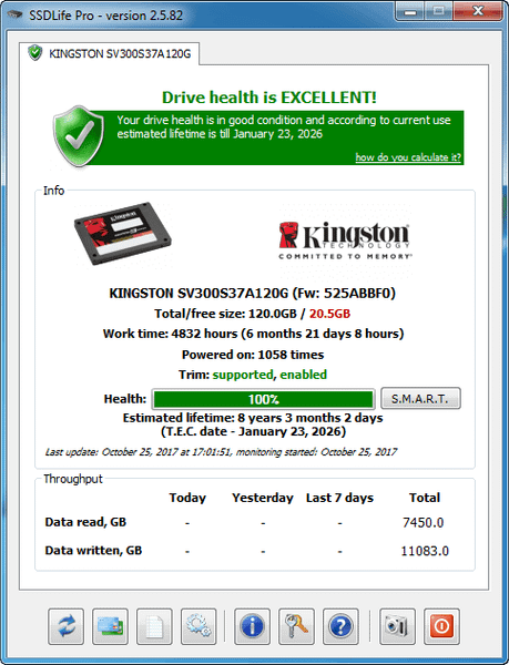 SSD Life là một phần mềm kiểm tra tình trạng của ổ đĩa SSD dựa trên thông tin được lưu trữ trên các vi mạch trong ổ đĩa.
